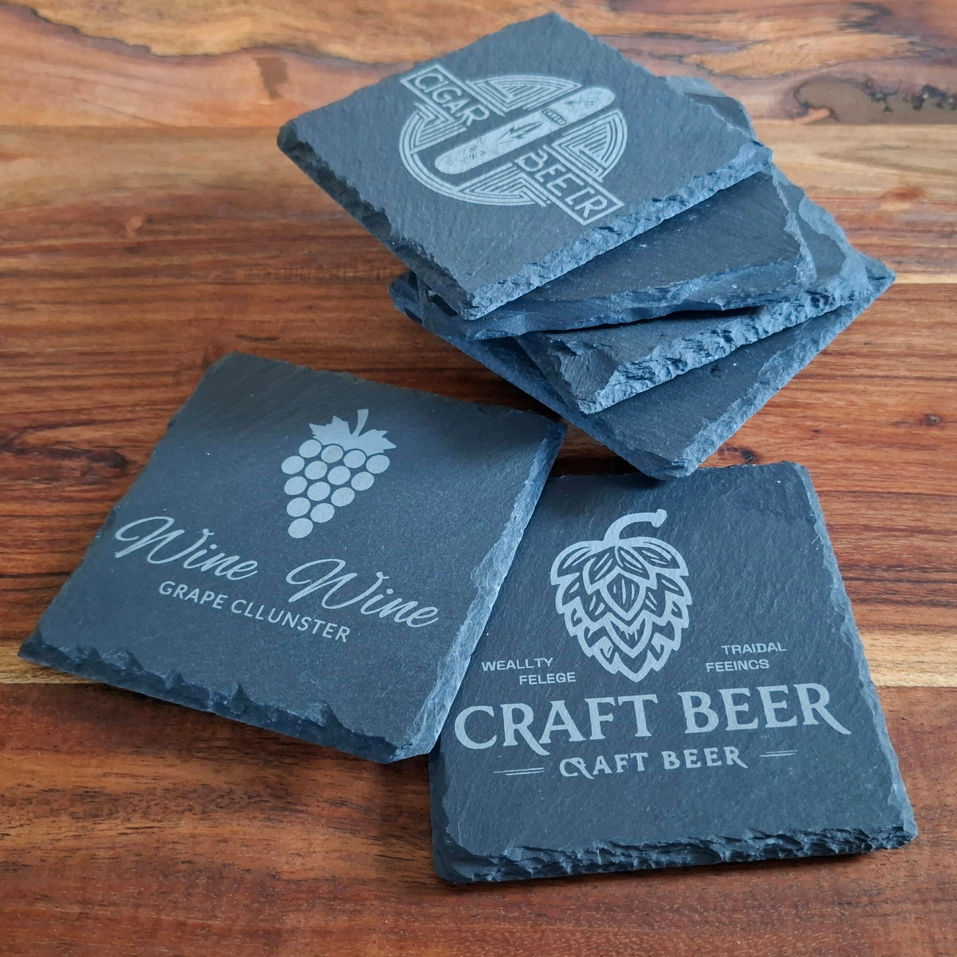 Schieferstein-Untersetzer quadratisch mit Füßen |